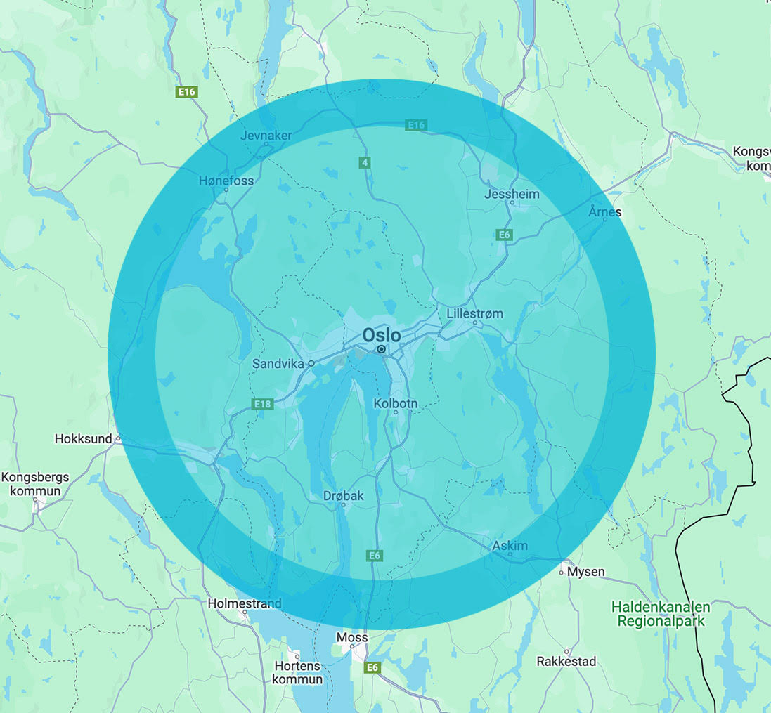 Vi opererer i hele området rundt Oslo, fra Drammen til Ski, Aurskog og Ås. Så lenge det ikke tar så mye mer enn en time å komme seg til deg kan du trygt ringe oss.